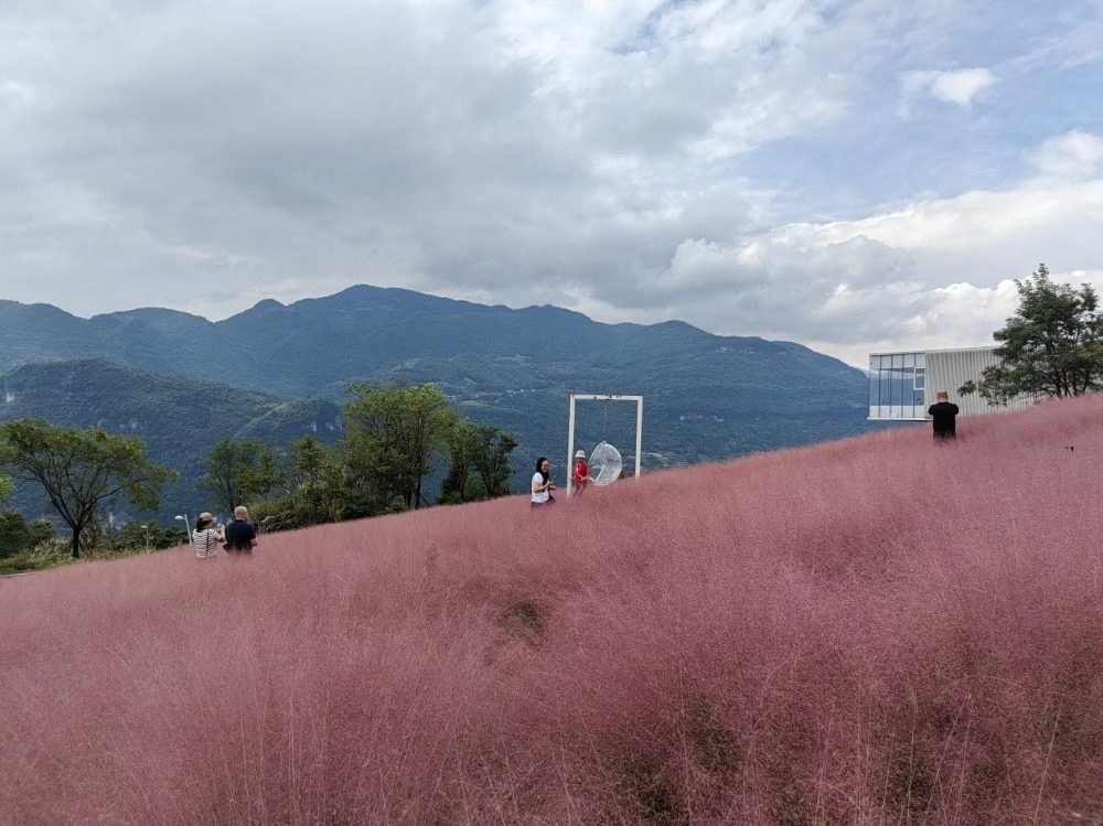 4日上午的懒坝景区,30余亩粉黛乱子草在秋日阳光下呈现出柔和的粉晕。花海旁的观景台上,来自重庆中心城区的游客钟琴正在欣赏美景,“昨天我们就在懒坝入住了,为的就是一早来花海打卡,避开人流高峰。”她告诉记者,懒坝景区的特色景点在社交平台走红,吸引了不少游客跟着“旅游打卡攻略”来旅行。